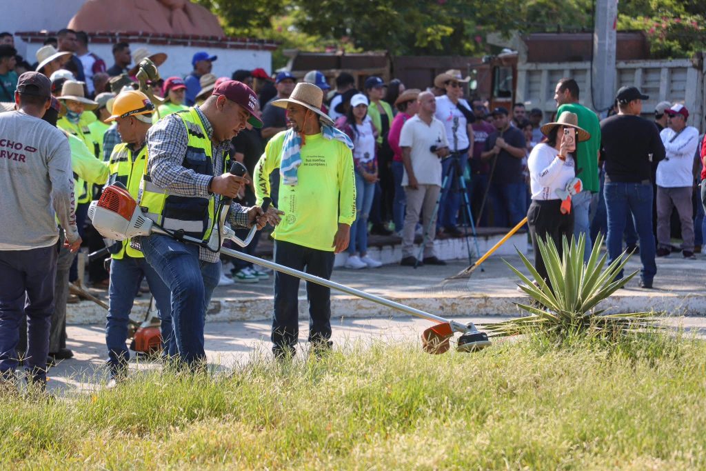 «Venimos a poner al 100 este bonito pueblo, con güiros, con machetes, con arañas, con escobas, con todo el equipo necesario, así que a darle con todo, porque en el gobierno de Bahía de Banderas, Estamos Hechos para Servir», expresó el alcalde al personal del ayuntamiento para iniciar la jornada.