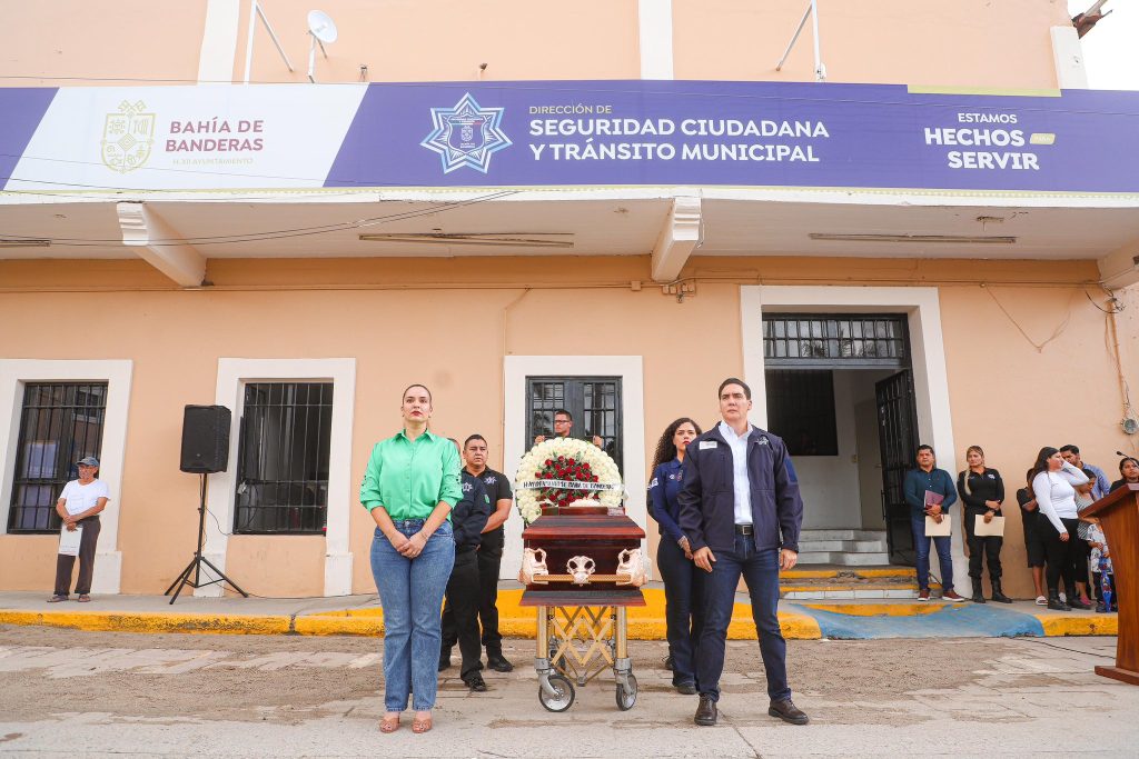 El Gobierno de Bahía de Banderas, que encabeza el presidente municipal Lic. Héctor Santana, realizó este lunes un sentido homenaje en memoria del policía municipal José Antonio González Alvarado, quien lamentablemente perdió la vida en un accidente de tránsito al término de sus funciones.