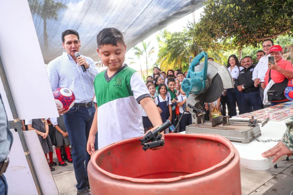 El programa contempla la entrega voluntaria de armas de fuego, las cuales son recibidas y resguardadas por personal del Ejército Mexicano, otorgando a cambio una remuneración económica según el tipo y calibre del arma. El alcalde subrayó además la relevancia de orientar a las nuevas generaciones hacia actividades positivas, alejadas de la violencia, e hizo un llamado a los padres de familia para sustituir los juguetes bélicos por materiales deportivos o didácticos.“Si queremos construir un futuro en paz, enseñemos a nuestros hijos a preferir un balón antes que una pistola”, enfatizó.En el evento participaron regidores del H. XII Ayuntamiento, la Dirección de Seguridad Pública, personal de la SEDENA, la Guardia Nacional, docentes y alumnos de diversas instituciones educativas, quienes se sumaron al compromiso por un municipio libre de violencia.