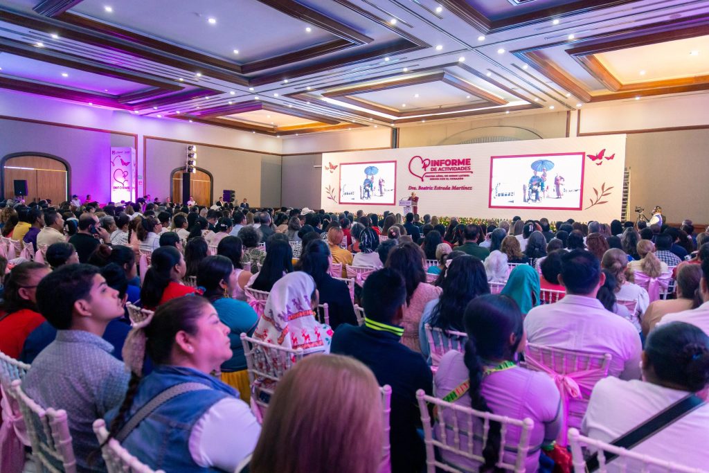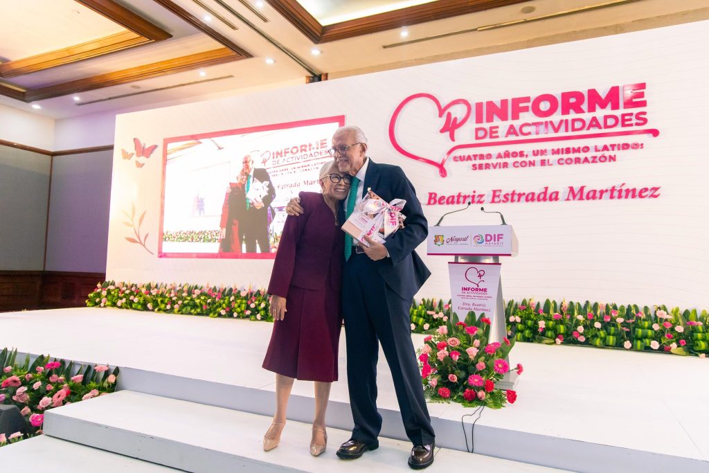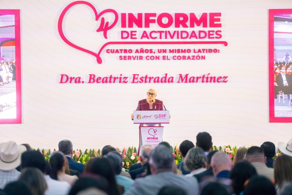 Con resultados tangibles y un mensaje de esperanza y agradecimiento, la presidenta del Sistema DIF Nayarit, doctora Beatriz Estrada Martínez, presentó su Cuarto Informe de Actividades, acompañada por su esposo, el gobernador del estado, Miguel Ángel Navarro Quintero; su familia; autoridades de los tres órdenes de gobierno; representantes sociales y medios de comunicación. En este encuentro, reafirmó su convicción de continuar sirviendo con el corazón y de seguir transformando la vida de miles de familias nayaritas con acciones concretas y de profundo sentido humano.