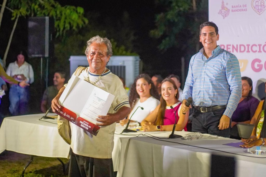 Apoyos a deportistas locales, incluyendo al campeón nacional de lanzamiento de jabalina Said Vargas y al equipo de natación inclusiva.Apoyo económico para el equipo de béisbol de veteranos que representará al municipio en Monclova, Coahuila.Asimismo, el alcalde destacó el trabajo de la Dirección del Registro Civil, que mantiene un récord en la entrega de actas de nacimiento, beneficiando a niños y adultos mayores que carecían de este documento, donde durante la Rendición se le hizo entrega del documento por primera vez, al señor Porfirio Tapia Palomera de 69 años de edad. En la Dirección de Medio Ambiente, se han consolidado acciones que promueven la preservación de los recursos naturales y el cuidado del entorno. Entre las principales estrategias destacan las campañas de limpieza, reforestación, descacharrización y reciclaje, esterilizaciones de animales de compañía, así como el mantenimiento de áreas verdes y la atención a zonas naturales protegidas, acciones que refuerzan la participación ciudadana y fomentan una cultura ambiental responsable, garantizando un municipio más limpio, ordenado y comprometido con la sostenibilidad. A su vez la Dirección de Protección Civil y Bomberos fortaleció sus capacidades operativas, equipo especializado y capacitación permanente del personal, para garantizar una respuesta rápida ante emergencias. Asimismo, se impartieron talleres y simulacros en escuelas, empresas y comunidades, promoviendo la prevención y la autoprotección como herramientas esenciales para reducir riesgos.El alcalde reconoció la labor del cuerpo de bomberos y rescatistas, quienes comentó “son un orgullo municipal por su valentía, compromiso y vocación de servicio”. En la Dirección de Desarrollo y Bienestar Social, se fortalecieron los programas de apoyo a familias en situación vulnerable, entregando ayudas alimentarias, becas educativas, apoyos a personas con discapacidad y adultos mayores, además de acciones comunitarias en materia deportiva y cultural. De igual manera se dio a conocer el programa de la segunda edición del Festival de Día de Muertos qué en esta ocasión contará con tres sedes, San Francisco, Sayulita y Bucerías.