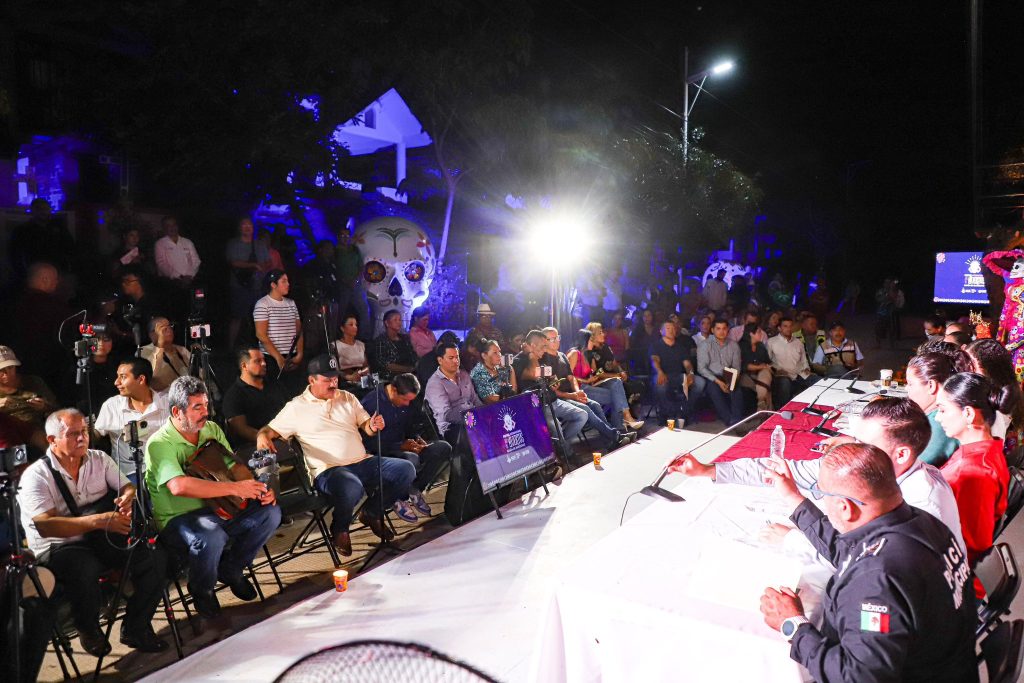“Detrás de nosotros está uno de los murales representativos de este Festival Internacional, y hoy nosotros como gobierno, en este segundo año, nos sumamos nuevamente a los trabajos que el pueblo tenía a bien realizar. Me da mucho gusto saludarlos y agradecer el esfuerzo conjunto de todas las áreas del Ayuntamiento que han trabajado para que este festival sea un éxito”, expresó Santana García. Entre los temas destacados, la Dirección de Desarrollo y Bienestar Social, presentó el avance del Festival Internacional de Día de Muertos, que este año contará con una amplia agenda artística y cultural. En Sayulita se realizará la tradicional Procesión de Catrinas, que espera reunir a más de 300 participantes, y en San Pancho se presentará el espectáculo “De la Tierra al Cielo”, bajo la dirección del maestro Germán Israel Ortiz, con la participación de artistas locales. Además, se reconoció el talento de muralistas del municipio que intervinieron los panteones con obras alusivas a las tradiciones mexicanas.