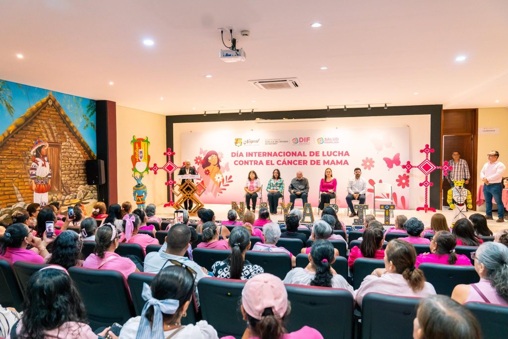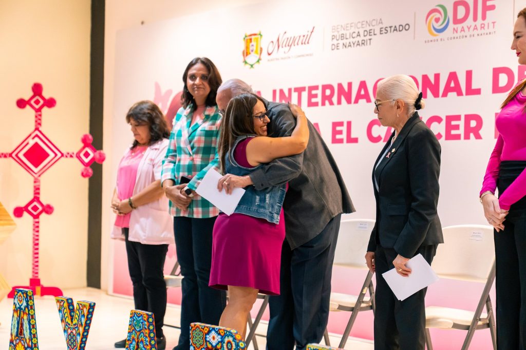 Por su parte, el gobernador Miguel Ángel Navarro Quintero destacó la importancia de generar conciencia sobre el cuidado de la salud y reafirmó la responsabilidad de su administración de acercar servicios y apoyos que fortalezcan a las mujeres en todos los ámbitos de su vida; además, se comprometió a que, junto a su esposa, continuará dando prioridad a las personas que enfrentan la lucha contra el cáncer. “Y aquí en Nayarit, lo que tengamos será para todas y para todos. Créanme, hoy se termina un mes, pero no se termina lo que debe ser atención permanente, Beatriz. Yo quiero que tú y yo hagamos un propósito fundamental: que los 22 meses, poquito menos que nos quedan en el gobierno, sean todos los días dedicados a la gente que tiene cáncer de mama, ya sea para prevenirlo, tratarlo o apoyarlas. Quiero irme sin ser gobernador ya, pero siendo una persona que se lleva un gran corazón, junto contigo, de los nayaritas”, señaló el mandatario estatal.