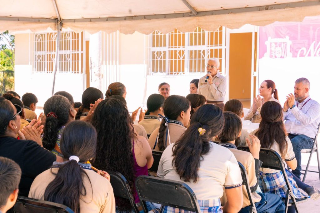 “Ver esa transformación en ese espacio, la verdad es que sí, es un sueño hecho realidad; tener un espacio digno, un espacio que les va a dar a ustedes como padres de familia la tranquilidad de que sus hijos están en un lugar seguro, en un lugar en donde tienen todo lo necesario para pasar las horas de estudio en plenas condiciones benéficas para todos ellos. De verdad que es un momento lleno de emoción, porque si algo ha caracterizado al gobernador del estado, a mi esposo, el doctor Miguel Ángel Navarro Quintero, es su compromiso con la educación y con la salud; y ustedes saben que sin educación no va a haber transformación, entonces, desde aquí estamos transformando”, expresó la doctora Beatriz Estrada Martínez.