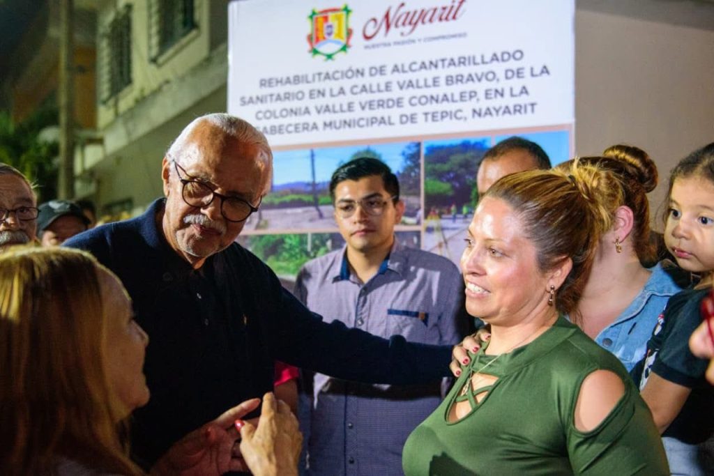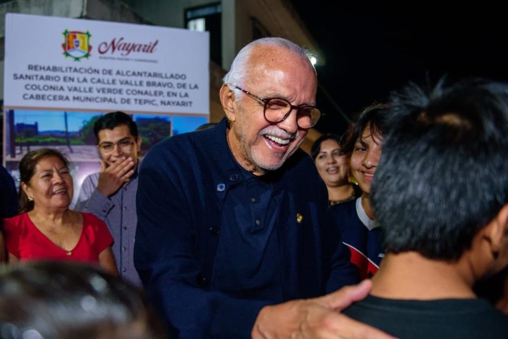 El gobernador Miguel Ángel Navarro Quintero supervisó los trabajos de rehabilitación del alcantarillado sanitario en la calle Valle Bravo, colonia Valle Verde Conalep de Tepic.