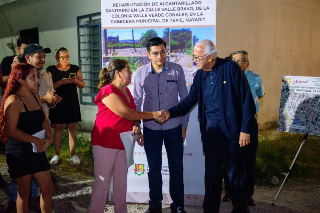 El gobernador Miguel Ángel Navarro Quintero supervisó los trabajos de rehabilitación del alcantarillado sanitario en la calle Valle Bravo, colonia Valle Verde Conalep de Tepic.