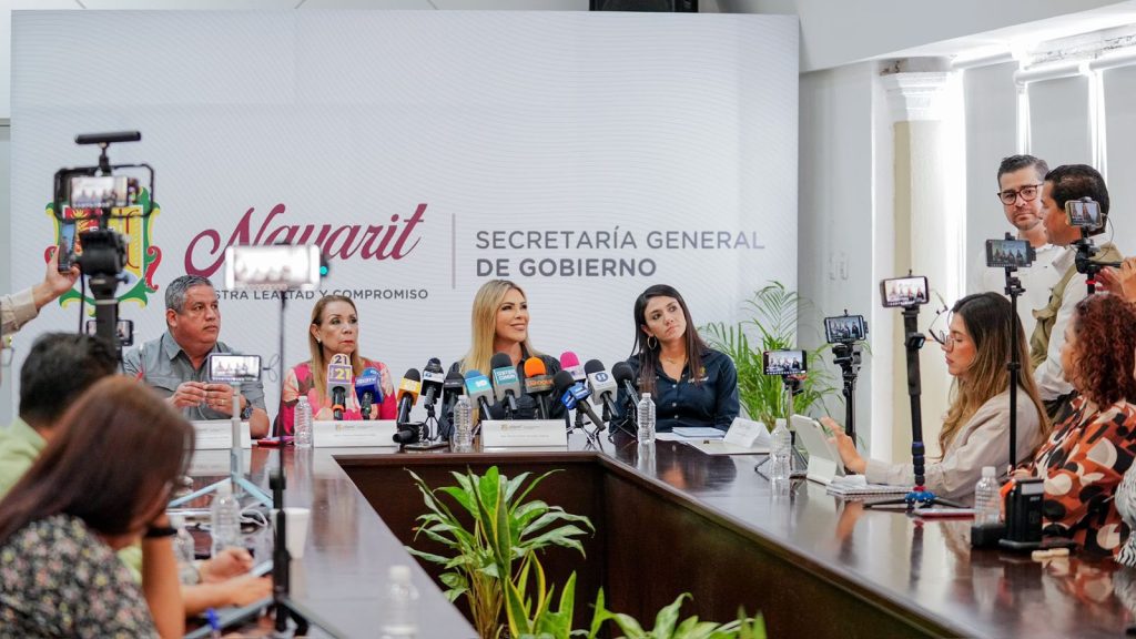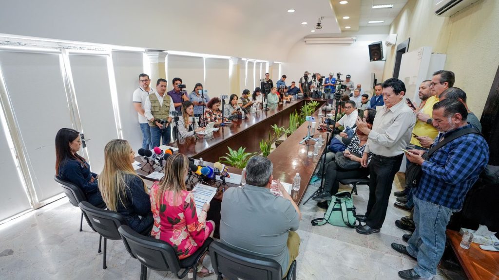 La secretaria general de Gobierno, Rocío Esther González García, junto a autoridades de Movilidad, Seguridad y Educación, presentó ante medios el programa cívico que se realizará este 20 de noviembre con motivo del CXV Aniversario del Inicio de la Revolución Mexicana.