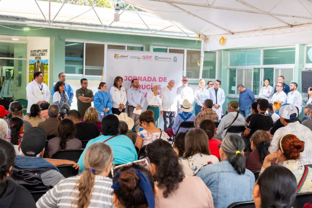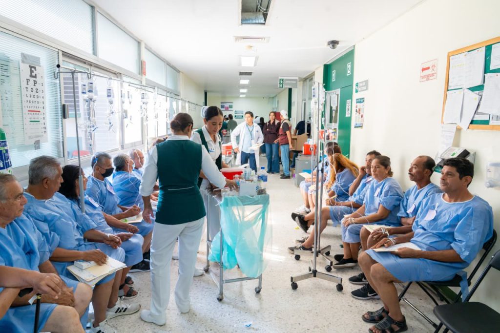 En total, se realizarán cerca de mil cirugías durante esta semana, mediante procedimientos seguros y oportunos que beneficiarán de forma gratuita a pacientes previamente valorados como candidatos aptos para la intervención. Esta jornada —realizada en coordinación con la estrategia nacional Ver por México, la Fundación Telmex, el Gobierno del Estado, los Servicios de Salud de Nayarit, el IMSS e IMSS-Bienestar también contempla la entrega de cerca de 4 mil 400 raciones de alimentos diarias, entre desayunos y comidas para pacientes y familiares