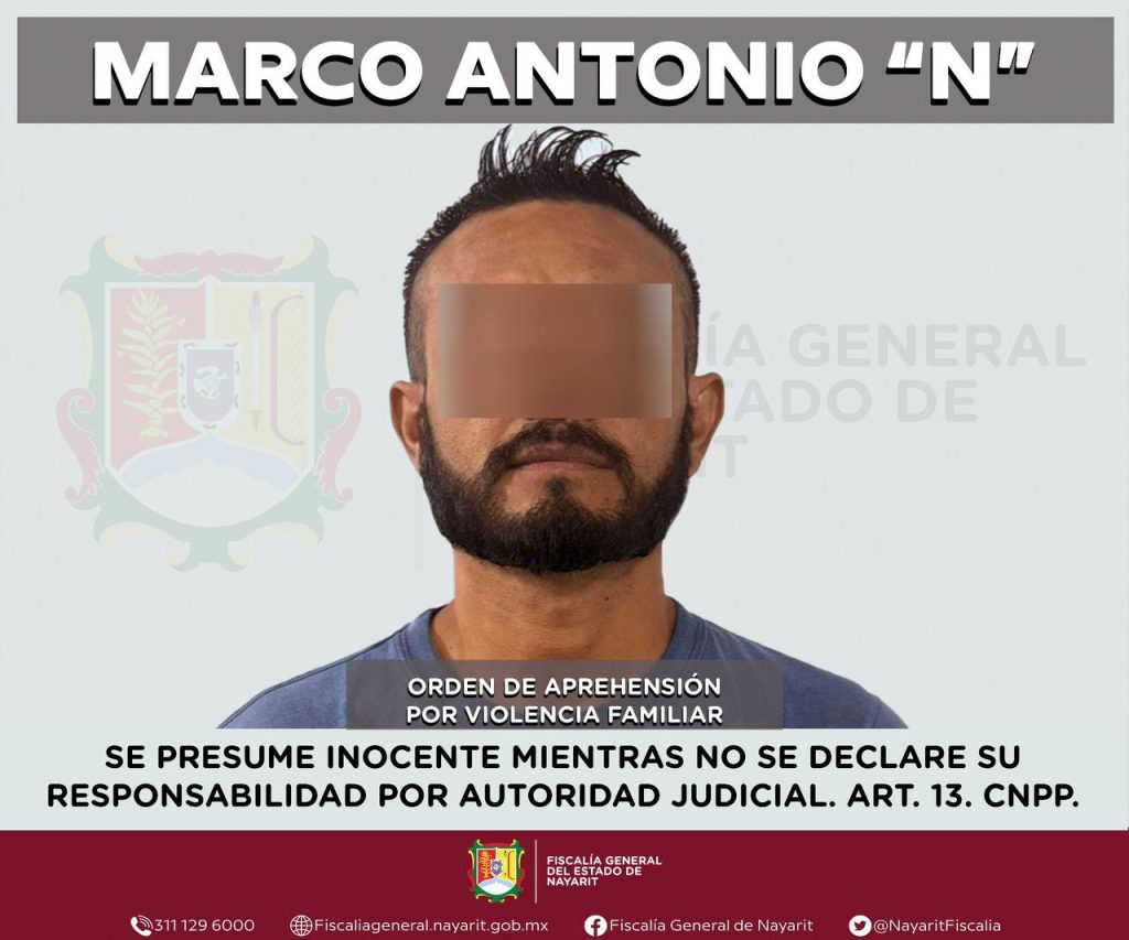 Elementos de la Agencia de Investigación Criminal de Nayarit ejecutaron una orden de aprehensión en la capital nayarita contra Marco Antonio “N”, por su probable participación en hechos que la legislación vigente tipifica como delito de violencia familiar, cometido en agravio de una mujer cuya identidad se reserva con el propósito de salvaguardar su privacidad e integridad.