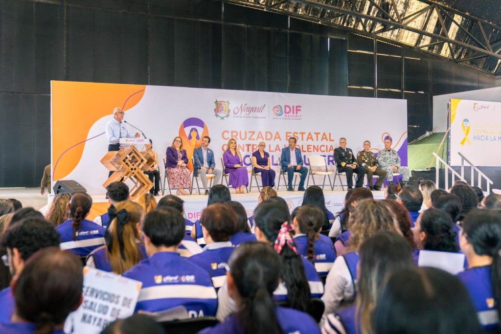 Para garantizar el derecho de todas las mujeres y niñas a vivir libres de violencia, la presidenta del Sistema DIF Nayarit, doctora Beatriz Estrada Martínez, y su esposo, el gobernador del estado, Miguel Ángel Navarro Quintero, presentaron la Cruzada Estatal Contra la Violencia hacia la Mujer, una estrategia integral que articula a los tres órdenes de gobierno, instituciones educativas, dependencias estatales y los DIF municipales.
