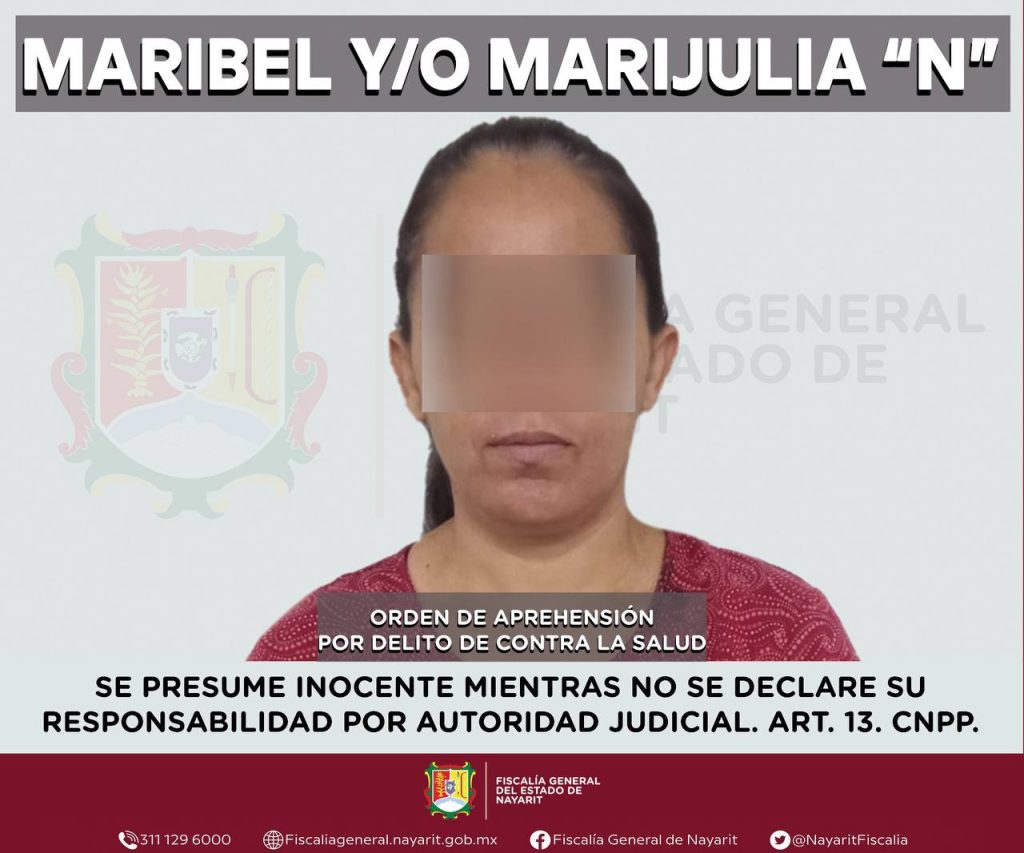 La Fiscalía General del Estado de Nayarit, a través de la Agencia de Investigación Criminal, ejecutó una orden de aprehensión en la ciudad de Tepic contra Maribel y/o Marijulia “N”, por su probable participación en hechos que la ley tipifica como delito contra la salud en su modalidad de narcomenudeo, en su hipótesis de posesión de psicotrópicos, cometidos en agravio de la sociedad.