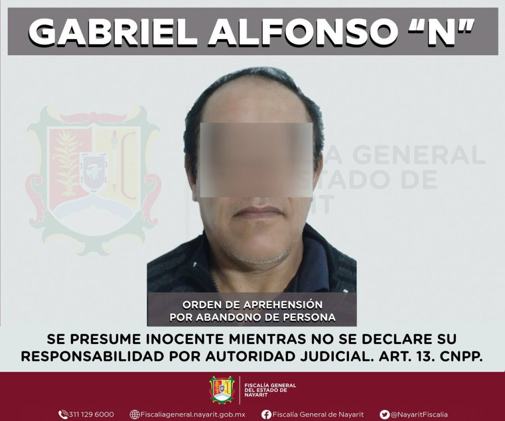 La Fiscalía General de Nayarit a través de la Agencia de Investigación Criminal ejecutó una orden de aprehensión en el municipio de Santiago Ixcuintla contra Gabriel Alfonso “N”, por su presunta participación en hechos que según apreciación de la ley encuadran el delito de abandono de persona, cometido contra una persona de sexo masculino de quien se reserva la identidad con el propósito de salvaguardar su privacidad e integridad.