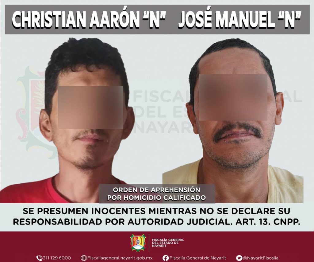 La Fiscalía General del estado a través de la Agencia de Investigación Criminal ejecutó una orden de aprehensión en la localidad Tecuitata, municipio de San Blas contra Christian Aarón “N” y José Manuel “N”, por su probable participación en hechos que para la ley configuran el delito de homicidio calificado, cometido contra una persona de sexo masculino de quien se reserva la identidad.