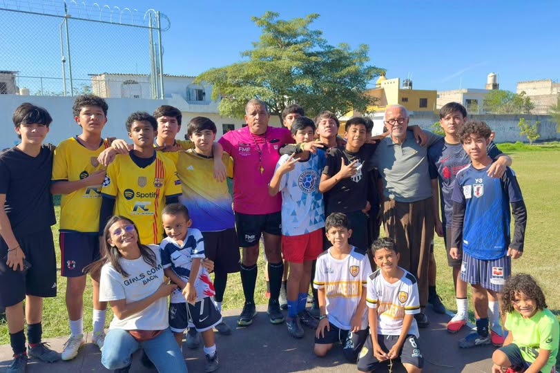 El gobernador del estado, Miguel Ángel Navarro Quintero, sostuvo un encuentro con jóvenes futbolistas que entrenan en la cancha de la colonia Tierra y Libertad, en la capital del estado, con quienes dialogó sobre sus aspiraciones, inquietudes y necesidades. Durante la visita, el mandatario estatal escuchó de primera mano a las y los deportistas, y se comprometió a brindarles apoyo mediante la entrega de uniformes, la construcción de baños y el fortalecimiento de la seguridad en este espacio deportivo, con el objetivo de ofrecer condiciones dignas y seguras para su desarrollo.