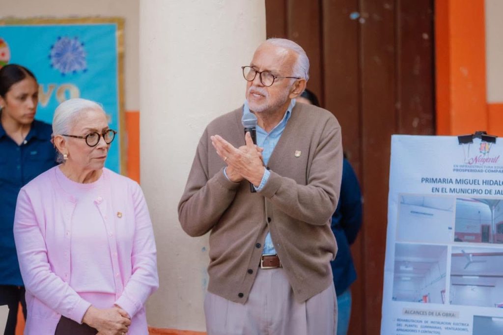 Este domingo, durante su gira de trabajo en el municipio de Jala, el gobernador del estado, Miguel Ángel Navarro Quintero, y su esposa, la doctora Beatriz Estrada Martínez, presidenta del Sistema DIF Nayarit, entregaron obras de mejoramiento en la escuela primaria Miguel Hidalgo y Costilla, que fortalecen directamente las condiciones en las que niñas y niños desarrollan su aprendizaje.