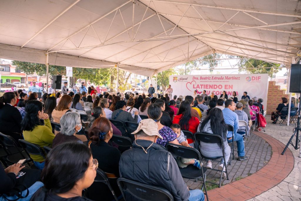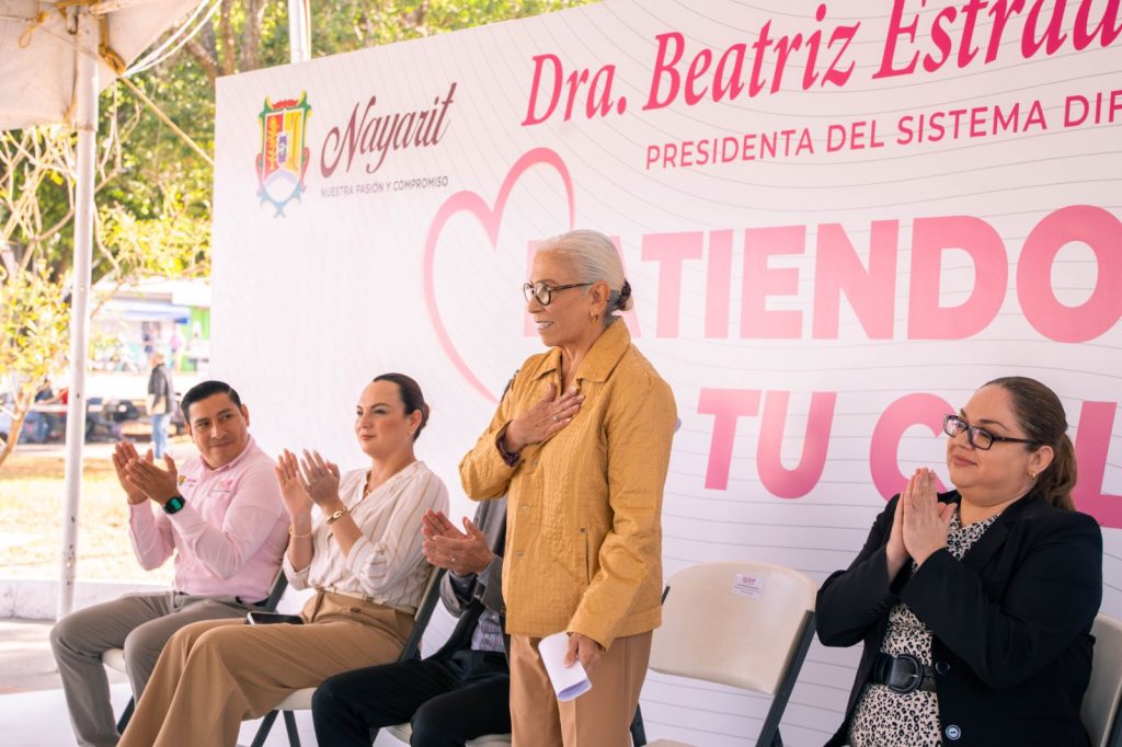 Con el propósito de atender las principales necesidades de las familias de Tepic y mejorar su calidad de vida, la presidenta del Sistema DIF Nayarit, doctora Beatriz Estrada Martínez, encabezó la gira Latiendo en Tu Colonia, donde acercó cientos de apoyos y servicios a los habitantes de la Colonia El Rodeo.