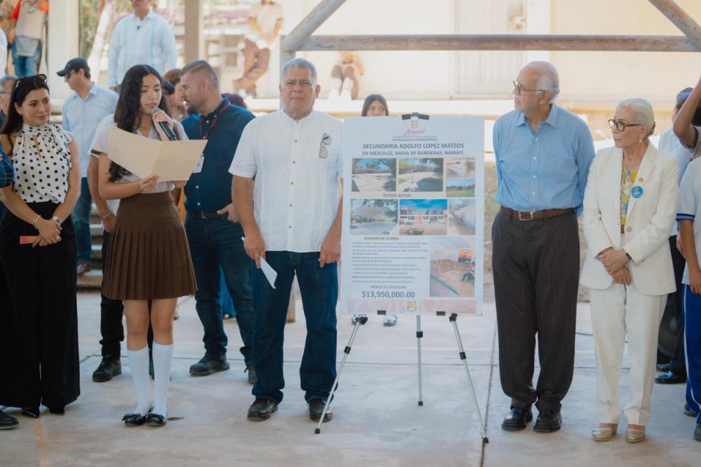 Otorgar mejores espacios educativos es apostar por el desarrollo y el bienestar de la juventud. Con esta convicción, el gobernador del estado, Miguel Ángel Navarro Quintero, acompañado de su esposa, la presidenta del Sistema DIF Nayarit, doctora Beatriz Estrada Martínez, encabezó el arranque de obra en la Secundaria Adolfo López Mateos, en la localidad de Mezcales.
