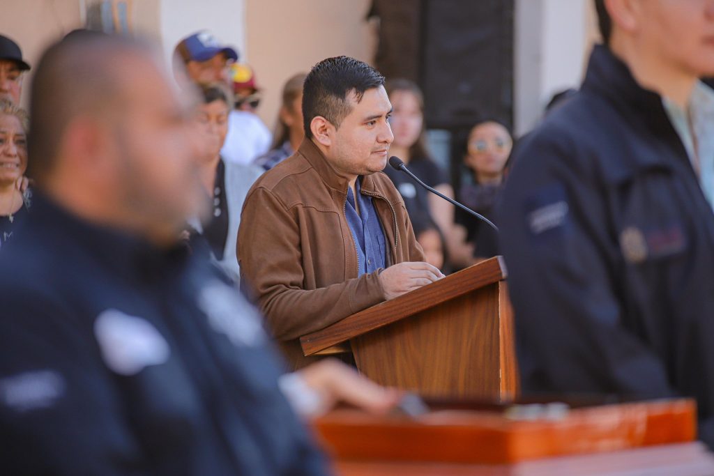 El presidente municipal, Héctor Santana, tomó la palabra para expresar su reconocimiento a la labor de Emanuel Alfonso de la Paz Chino, mejor conocido como «Meño» y su cercanía con la corporación. Señaló que fue un servidor público que nunca tuvo horarios, siempre estuvo disponible para apoyar y que se distinguió por su compromiso con la justicia y el bienestar de la comunidad.