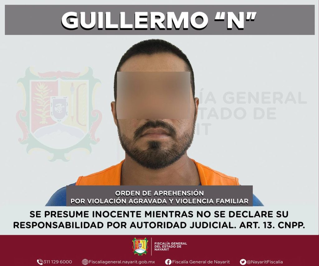 En colaboración con la Fiscalía General del estado de Oaxaca, personal de la Agencia de Investigación Criminal de Nayarit ejecutó una orden de aprehensión en el municipio de Bahía de Banderas contra Guillermo “N”, por su presumible participación en hechos que para la ley configuran los delitos de violación agravada y violencia familiar, ilícitos cometidos contra una persona de sexo femenino cuya identidad se mantiene bajo reserva.