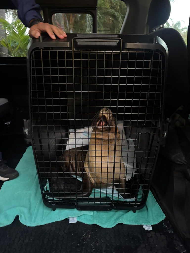 Con el respaldo cercano del alcalde Héctor Santana, «Marquitos» , el lobo marino rescatado en Bahía de Banderas, es trasladado a Guadalajara para una delicada cirugía de mandíbula.