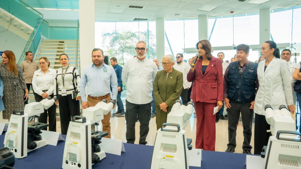 Durante esta jornada se entregó equipo de tecnología molecular GeneXpert para diagnósticos en minutos, aparatos para hemocultivos y detección de infecciones asociadas a la atención en salud, analizadores VITEK para combatir la resistencia antimicrobiana, un cromatógrafo de gases para protección sanitaria y apoyo a la exportación de productos nayaritas, así como 15 microscopios para vigilancia de tuberculosis para clínicas ubicadas en Tepic, Acaponeta, Santa María del Oro, Ixtlán del Río, Puente de Camotlán (La Yesca), La Peñita de Jaltemba (Compostela) y Tondoroque (Bahía de Banderas).