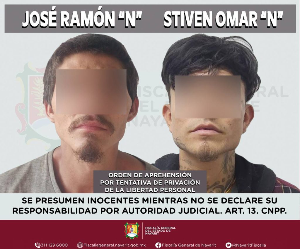 Elementos de la Agencia de Investigación Criminal de Nayarit ejecutaron una orden de aprehensión en la ciudad de Tepic contra Stiven Omar “N” y José Ramón “N”, por su presumible participación en hechos que para la ley configuran el delito de privación de la libertad personal en grado de tentativa, cometido contra una persona de sexo masculino de identidad reservada para salvaguardar su privacidad e integridad.