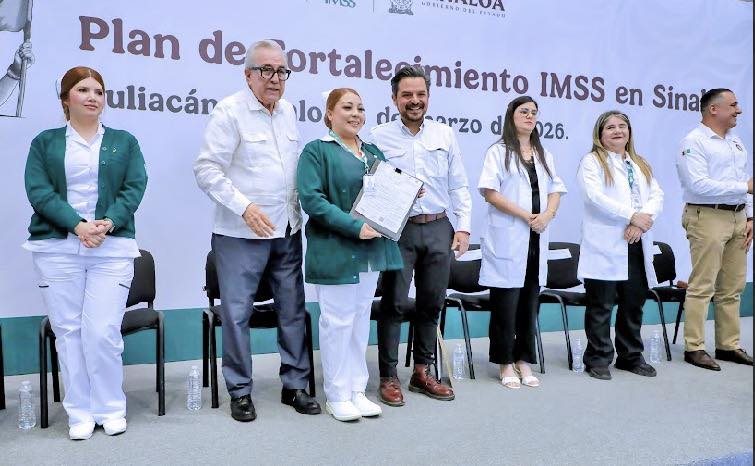 El director general del Instituto Mexicano del Seguro Social (IMSS), Zoé Robledo, y el gobernador de Sinaloa, Rubén Rocha Moya, encabezaron la entrega de 60 plazas definitivas a trabajadoras y trabajadores de distintas categorías en unidades médicas y operativas como parte del Plan de Fortalecimiento IMSS Sinaloa, un esfuerzo que busca consolidar la capacidad operativa, mejorar la atención médica y brindar certeza laboral al personal.