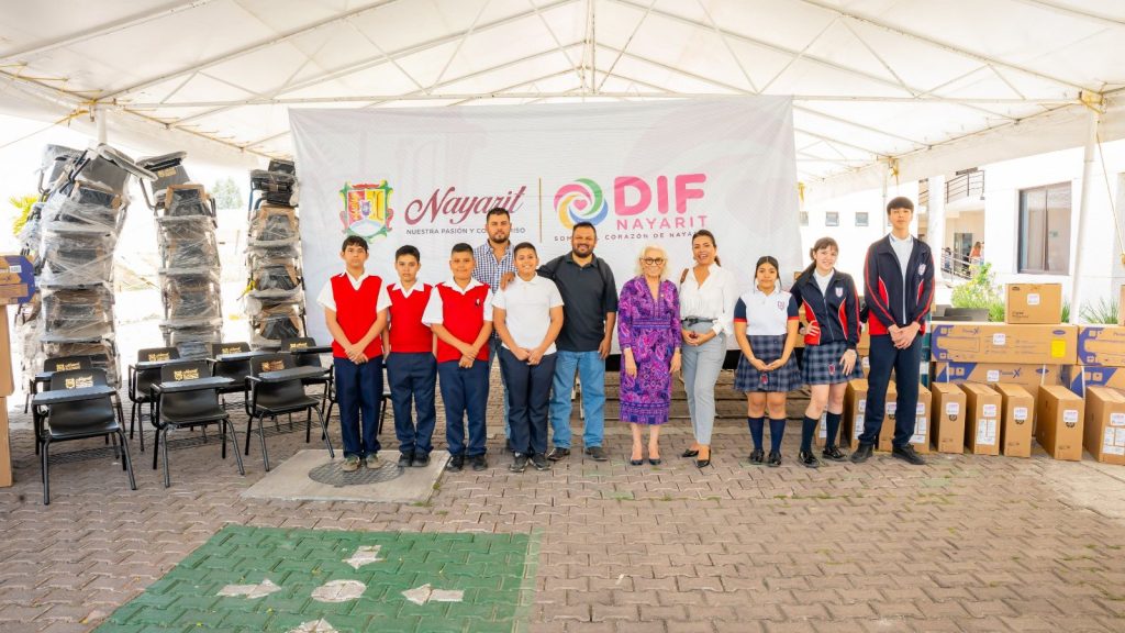Generar entornos educativos con calidad y calidez es una prioridad para la presidenta del Sistema DIF Nayarit, doctora Beatriz Estrada Martínez, quien encabezó la entrega de apoyos en especie a la escuela primaria Ignacio Manuel Altamirano, de Ixtlán del Río, y a la secundaria Justo Sierra, de Tepic.