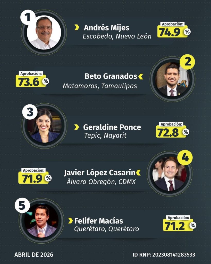 Los resultados de estas mediciones consolidan a Geraldine Ponce no solo como una de las alcaldesas mejor evaluadas a nivel nacional, sino también como el perfil morenista mejor posicionado en el estado de Nayarit.