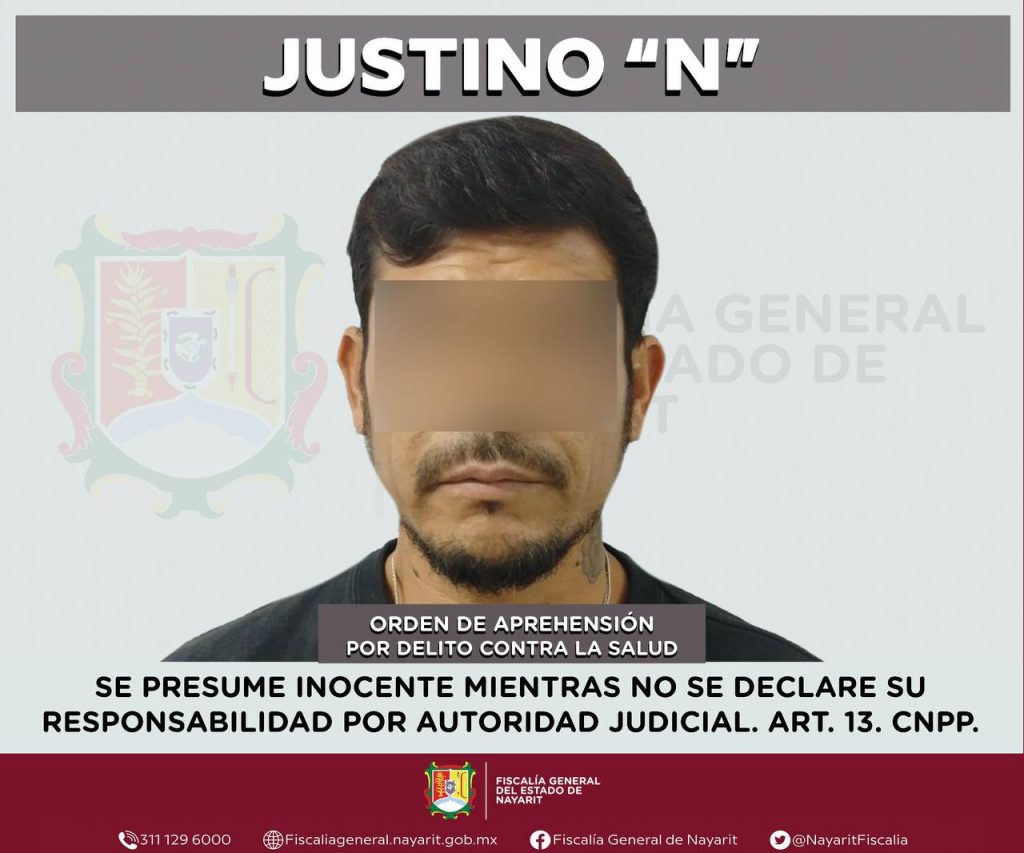 La Fiscalía General del Estado de Nayarit informa que elementos de la Agencia de Investigación Criminal ejecutaron una orden de aprehensión en la ciudad de Tepic en contra de Justino “N”, por su presunta participación en hechos que la ley tipifica como delito contra la salud, en la modalidad de narcomenudeo, en su hipótesis de posesión de psicotrópicos, cometido en agravio de la sociedad.