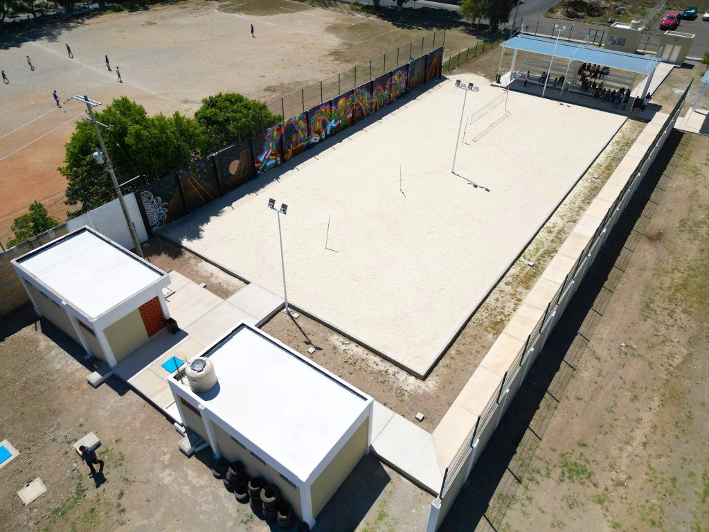 El mandatario estatal informó que, con una inversión cercana a los 7 millones de pesos, provenientes de recursos propios y de una recaudación transparente, se construyeron dos canchas de alto nivel, consideradas entre las mejores en su tipo en México, con arena utilizada en competencias internacionales, además de baños, regaderas al aire libre, gradas techadas y una zona destinada al proyecto de tiro con arco.