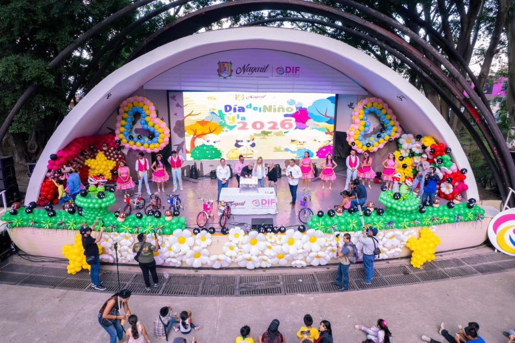 Miguel Ángel Navarro y Beatriz Estrada celebran a la niñez nayarita en el parque La Loma.